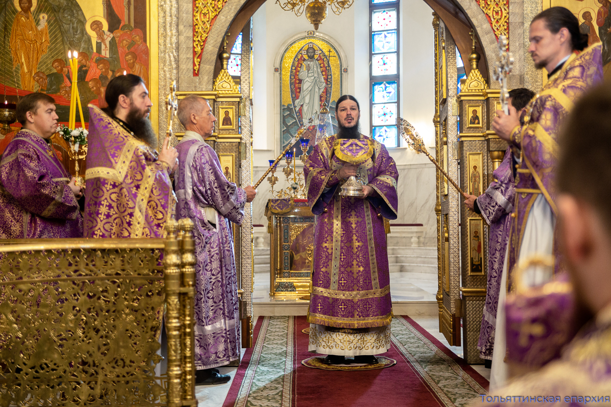 В этот день во всех православных храмах проходят торжественные богослужения. Божественную литургию в Преображенском кафедральном соборе Тольятти отслужил епископ Тольяттинский и Жигулёвский Нестор.