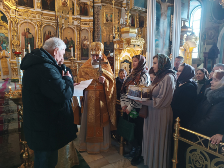 По окончании богослужения протоиерей Григорий Коберник принимал многочисленные поздравления от архимандрита Антония и клириков епархии.