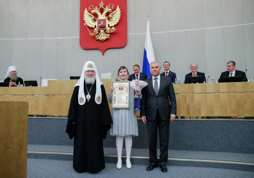 Девочку из Сызрани наградили в Госдуме патриарх Кирилл и Вячеслав Володин