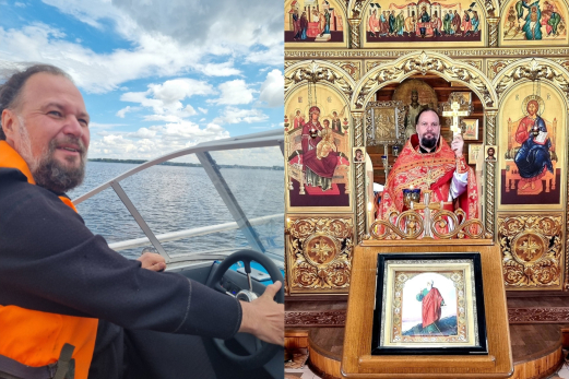 После богослужения священник решил отметить праздник по-особому и отправился на моторной лодке вместе с одним из прихожан храма Феодоровской Божьей матери по Волжским просторам.