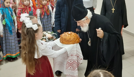 Там прошел концерт, посвященный празднику Рождества Христова. Владыку Сергия юные воспитанники епархиального центра встретили традиционными «хлебом-солью».