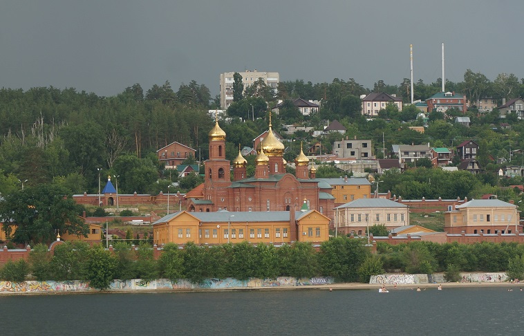 Далее паломники переместились в Воскресенский мужской монастырь. Монастырь на берегу Жигулёвского моря основан 25 лет назад, но зданиям, в которых обустроены домовые храмы и братские келии, более 120 лет .
