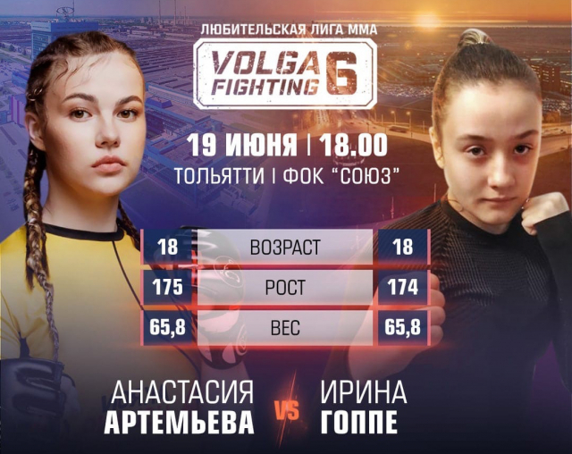 Всего на турнире пройдет десять боев. Два боя будут титульными – за пояс чемпиона лиги Volga Fighting в двух весовых категориях. Турнир пройдет в ФОКе «Союз» в воскресенье, 19 июня. Начало турнира в 18:00.