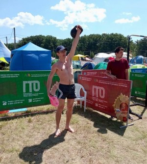 На площадке ГТО проходит пробное выполнение нормативов. Каждый желающий может принять участие и проверить свой уровень физической подготовленности, а также попробовать свои силы в спортивных состязаниях на рекорд. Сильнейших выявляют в отжиманиях и рывке гири.