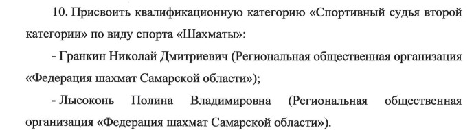 Распоряжение о присвоении квалификационных категорий спортивным судьям г.о. Самара.