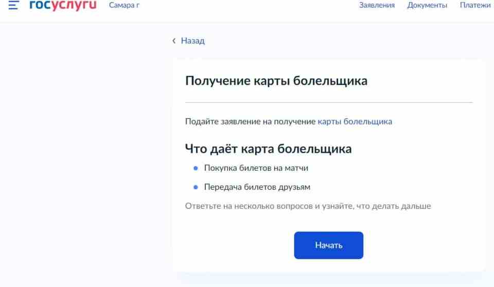 С 4 июля самарцы могут оформит карту болельщика на Госуслугах