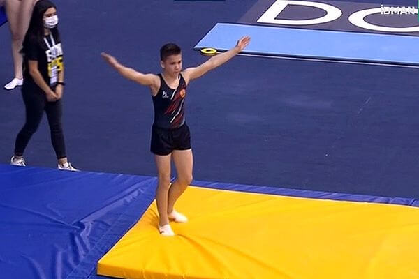 В программе прыжков на акробатической дорожке у мужчин в возрастной категории 13-14 лет третье место занял Матвей Белов .