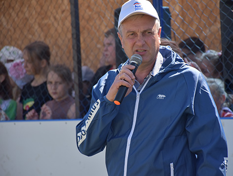 После церемонии поднятия Государственного Флага Российской Федерации, игроков и болельщиков поприветствовал Глава муниципального района Пестравский Сергей Викторович ЕРМОЛОВ и пожелал командам успехов в самой массовой игре, а также выразил надежду на то, что наши игроки смогут достойно защитить честь района в зональных и областных соревнованиях.