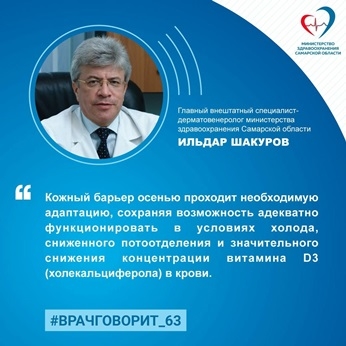 Как заботиться о здоровье кожи и избежать заболеваний в это время года, рассказывает главный внештатный специалист-дерматовенеролог министерства здравоохранения Самарской области, главный врач Самарского областного кожно-венерологического диспансера Ильдар Шакуров :