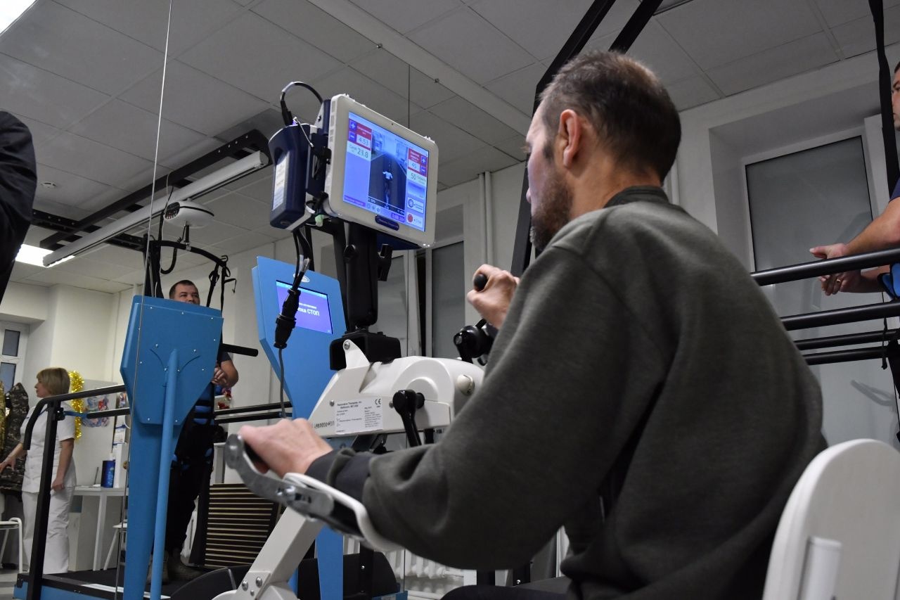 Губернатор осмотрел корпус с отделением реабилитации, тренажерный зал, зал механотерапии, интерактивных технологий, массажный кабинет, палаты. Сотрудники продемонстрировали действие современных аппаратных тренажеров с биологической обратной связью, комплекс тренажеров на все группы мышц, которые помогают бойцам с ампутированными конечностями восстанавливать равновесие и функции мышц.