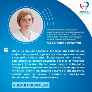 Главный внештатный специалист педиатр министерства здравоохранения Самарской области по г.о. Тольятти, главный врач Тольяттинской городской детской клинической больницы Светлана Гаршина :