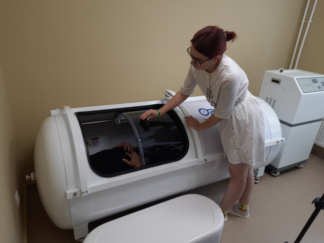 Еще одна процедура - это баротерапия - лечебное воздействие на пациента производится с помощью пониженного и повышенного атмосферного давления. Насыщение организма кислородом проводится в специальной барокамере. Эта процедура хороша при заболеваниях сосудов конечностей с выраженным отёком, последствиях воспалительных процессов, артрозах и артритах, хронических заболеваниях малого таза, заболеваниях женской и мужской половой сферы.