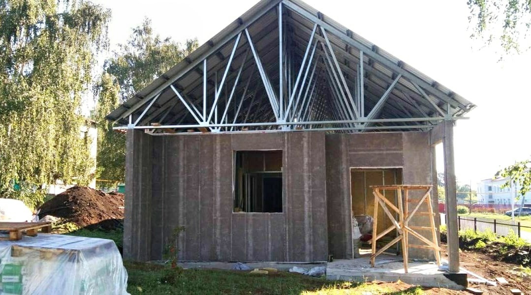 Возведение модульного здания ФАПа в селе Черный Ключ началось в июне этого года. На сегодняшний день завершен монтаж металлической конструкции и кровли, выполняется устройство фасада.