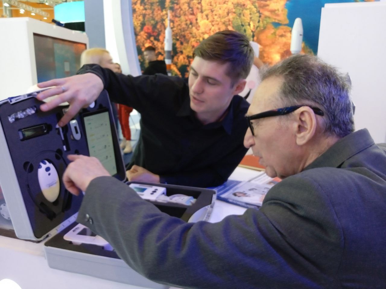 На стенде Самарской области посетителей встречали волонтеры-медики. Свои флагманские инновационные разработки в области телемедицины и эндопротезирования представил Самарский государственный медицинский университет Минздрава РФ. Три варианта телемедицинских кейсов, в которых используется платформа дистанционного мониторинга физиологических показателей пациента “Health Check-Up" – разработки Института инновационного развития СамГМУ.