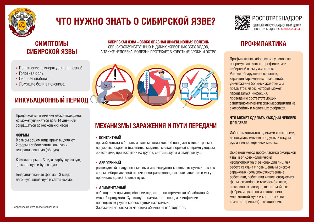 Роспотребнадзор напоминает, что сибирская язва — это особо опасная инфекционная болезнь сельскохозяйственных и диких животных всех видов, а также человека.