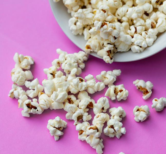 Любимый снек киноманов – попкорн – таит в себе опасность травмировать десну, зуб или даже спровоцировать скол зуба. Это происходит в том случае, если в рот неожиданно попадает не лопнувшее зернышко кукурузы. Кроме того, кусочки попкорна застревают в десне и могут вызвать ее воспаление.