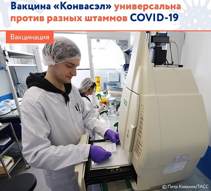 «Действие вакцины "Конвасэл" направлено на внутренний, нуклеокапсидный N белок вируса SARS-CoV-2, который менее подвержен мутациям, в отличие от поверхностного S белка, на который нацелены ранее созданные вакцины, и остаётся идентичным для существующих штаммов вируса. Это делает вакцину "Конвасэл" практически универсальной», — пояснили в Федеральном медико-биологическом агентстве.