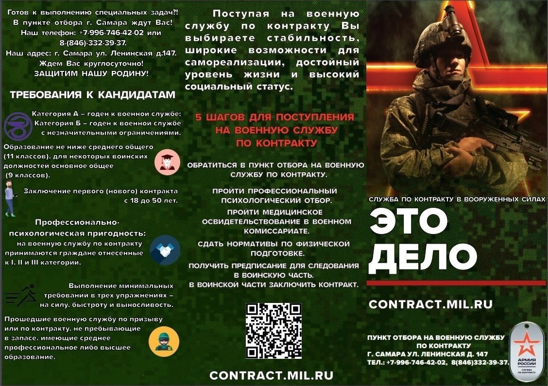Ведётся отбор граждан к поступлению на военную службу по контракту в Вооруженные Силы Российской Федерации.