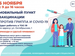 5 ноября с 9 до 16 часов в Тольятти будет работать мобильный пункт вакцинации против гриппа и COVID-19 в ТОС-19 по адресу: ул. Октябрьская, 1. Организатором выступили: администрация города совместно с медицинским учреждением.