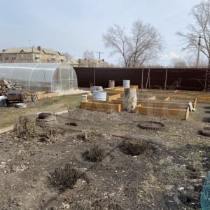 Участок ухоженный (грядки, цветник, новые плодовые деревья, виноград, клубника)