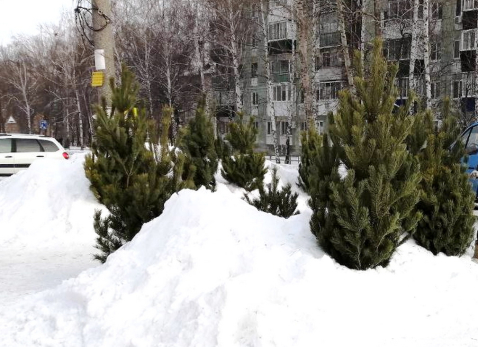 Сегодня базаром заняты лишь несколько сугробов. Зато продавец отмечает, что у него «все легально». Но выбор небольшой. За маленькую сосенку высотой 70-80 см просят 500 рублей, за двухметровое дерево – 1 000 рублей.