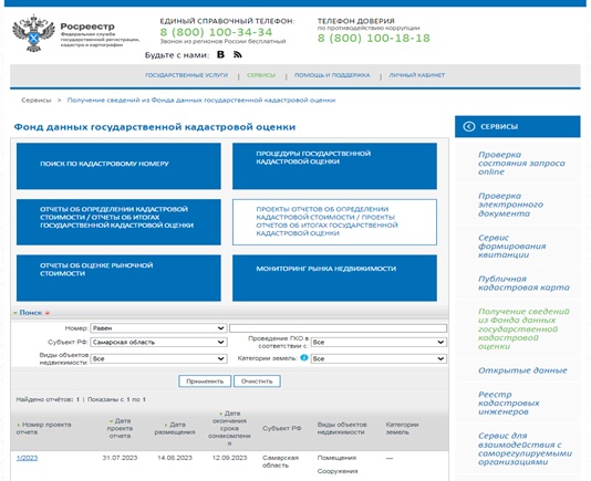 Также проект отчета, включая приложения, размещен на официальном сайте Учреждения www.cko63.ru в разделе «Кадастровая оценка» (подраздел «Год проведения ГКО», далее «2023»).