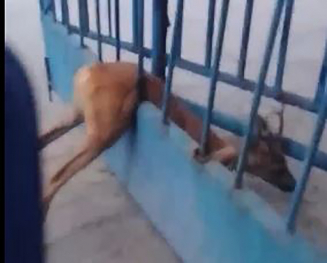 В Самарской области косуля попала в ловушку, когда пыталась проскочить между металлических прутьев.
