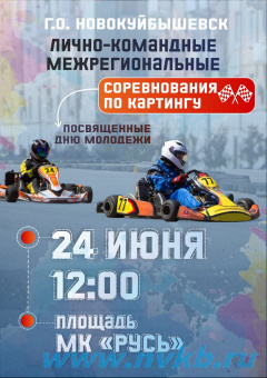 24 июня 2023г. в Новокуйбышевске состоятся лично-командные межрегиональные соревнования по картингу, посвященные Дню Молодёжи!