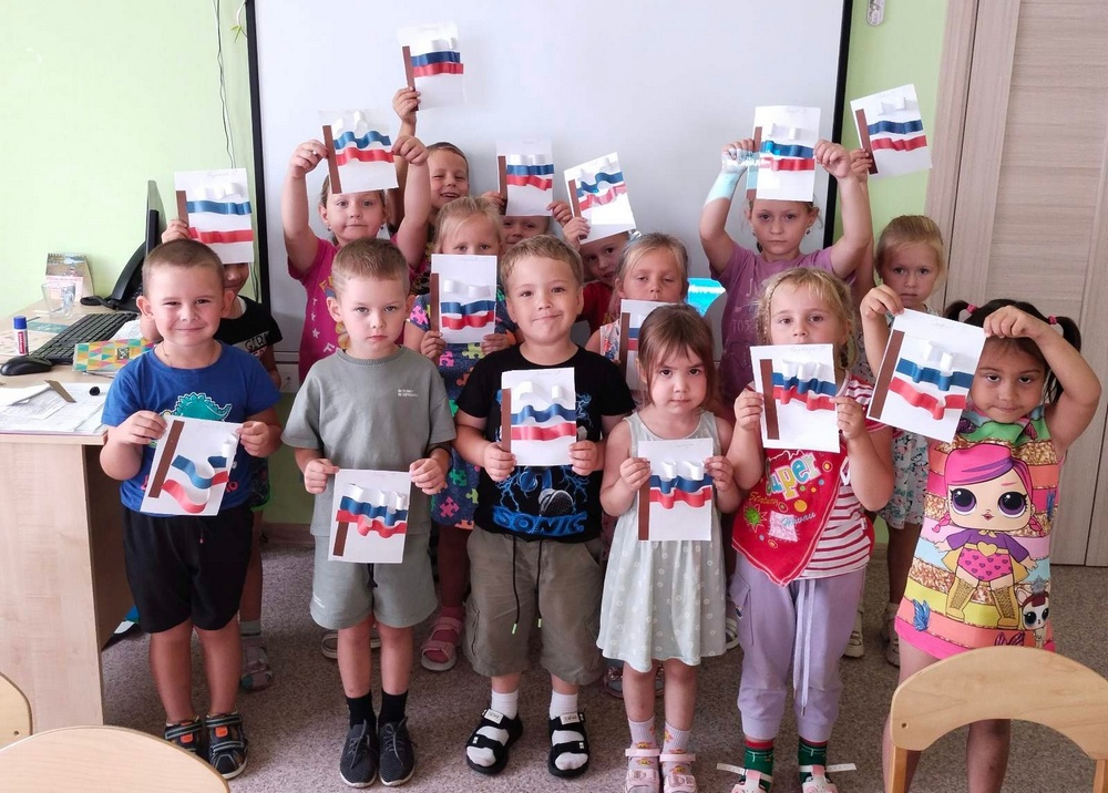 Под руководством музыкального педагога Елены Биляровой с детьми были проведены занятия о символике нашей Родины: «Флаг моей страны», «Белый, синий, красный», разучены стихи о триколоре. Дошкольники узнали о том, что государственное знамя всегда поднимается во время торжественных мероприятий, праздников, и в это время звучит гимн Российской Федерации.