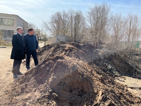 Около домов №71, 73 и 73а на бульваре 50 лет Октября, начались работы по обратной засыпке котлована.