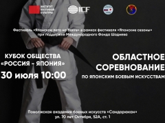 30 июля в 10:00 в рамках фестиваля "Японское лето на Волге" при поддержке Международного Фонда Шодиева состоится областное соревнование по японским боевым искусствам за Кубок Общества "Россия-Япония".