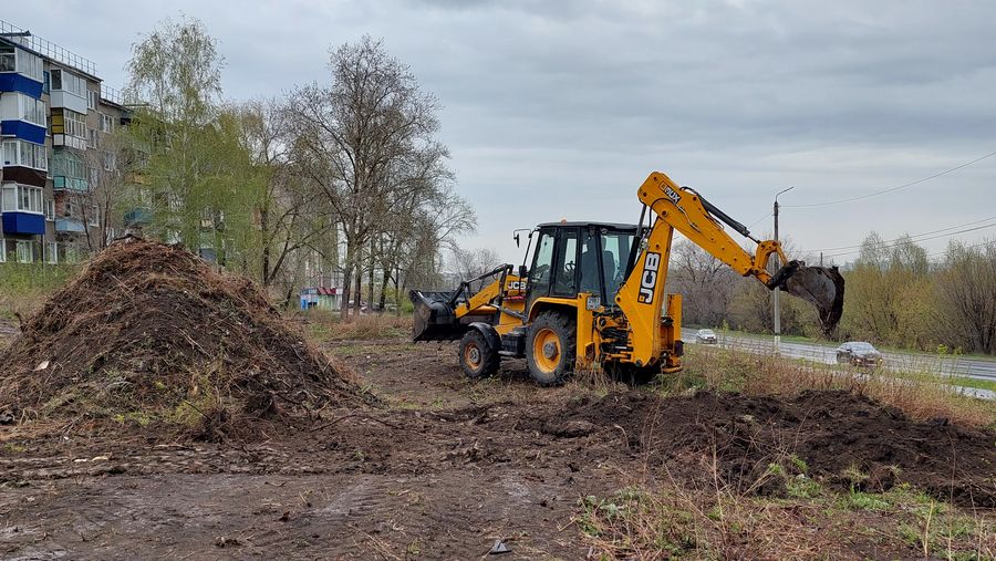 Работы стартовали в начале апреля. На данном этапе производится выкорчёвка пней, вырубка растительности, снятие старого асфальта.