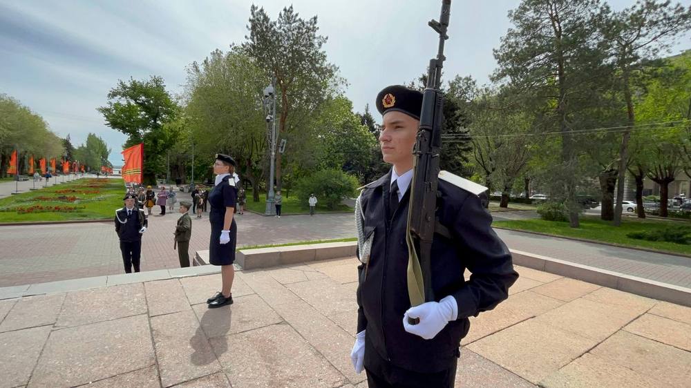 1 мая в город на Волге, в годы войны именовавшийся Сталинградом, отправилась делегация из Чапаевска — отличники строевой подготовки почетного караула. В среду школьники и студенты заступили на Пост № 1 на площади Павших Борцов.