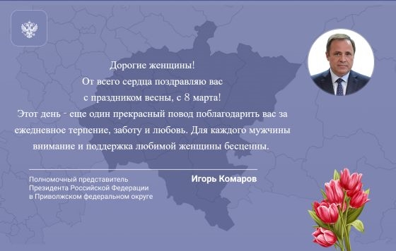 Поздравление полномочного представителя Президента РФ в ПФО Игоря Комарова с Международным женским днем
