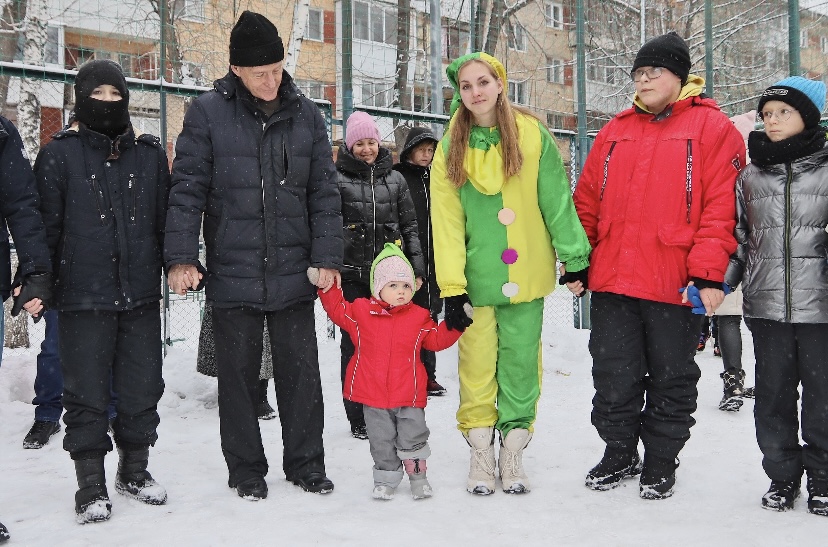 На площадке около сверкающей, нарядной елочки ребят разного возраста, их родителей, бабушек, и дедушек встретили Дед Мороз и Снегурочка. Вместе с ними ребята водили хороводы, пели песни, читали стихи. Не обошлось без конкурсов и сладких подарков. Хорошее настроение и атмосфера радости царили на протяжении всего празднества.