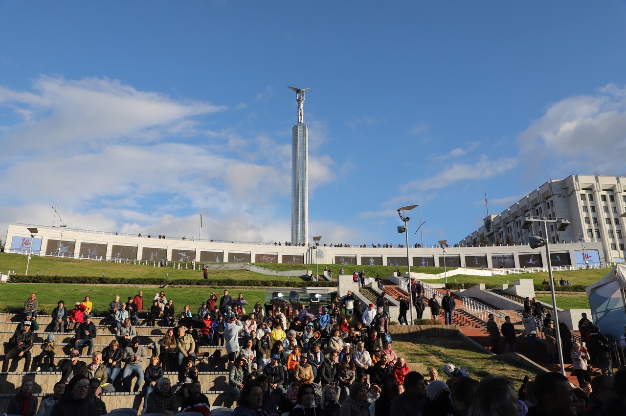 В рамках Дня города c 18:00 в амфитеатре склона площади Славы начался концерт классической музыки с участием звезд оперной сцены Аиды Гарифуллиной , Алексея Татаринцева ,