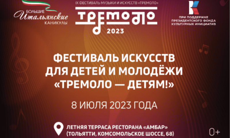8 июля Тольятти ждет Фестиваль искусств для детей и молодёжи, который пройдет в рамках XVI Фестиваля музыки и искусств «Тремоло»